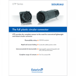 The Eaton Souriau UTP series is a circular plastic connector suitable for industrial applications with IP65 sealing and compliant with major electrical IEC and UL standards for safety. The 1/3 bayonet coupling system allows for quick connection. The UTP series offers a large choice of layouts, shells, and contact types to mix signal and power or copper and optics within the same connector. A complete catalog of accessories is available, including backshells and caps, for a complete interconnect solution. UTP connectors are fully compatible with UTS and UTG series, allowing for switching between series without tool or panel cut-out modifications. Upgrade your product easily and affordably with the UTP series.