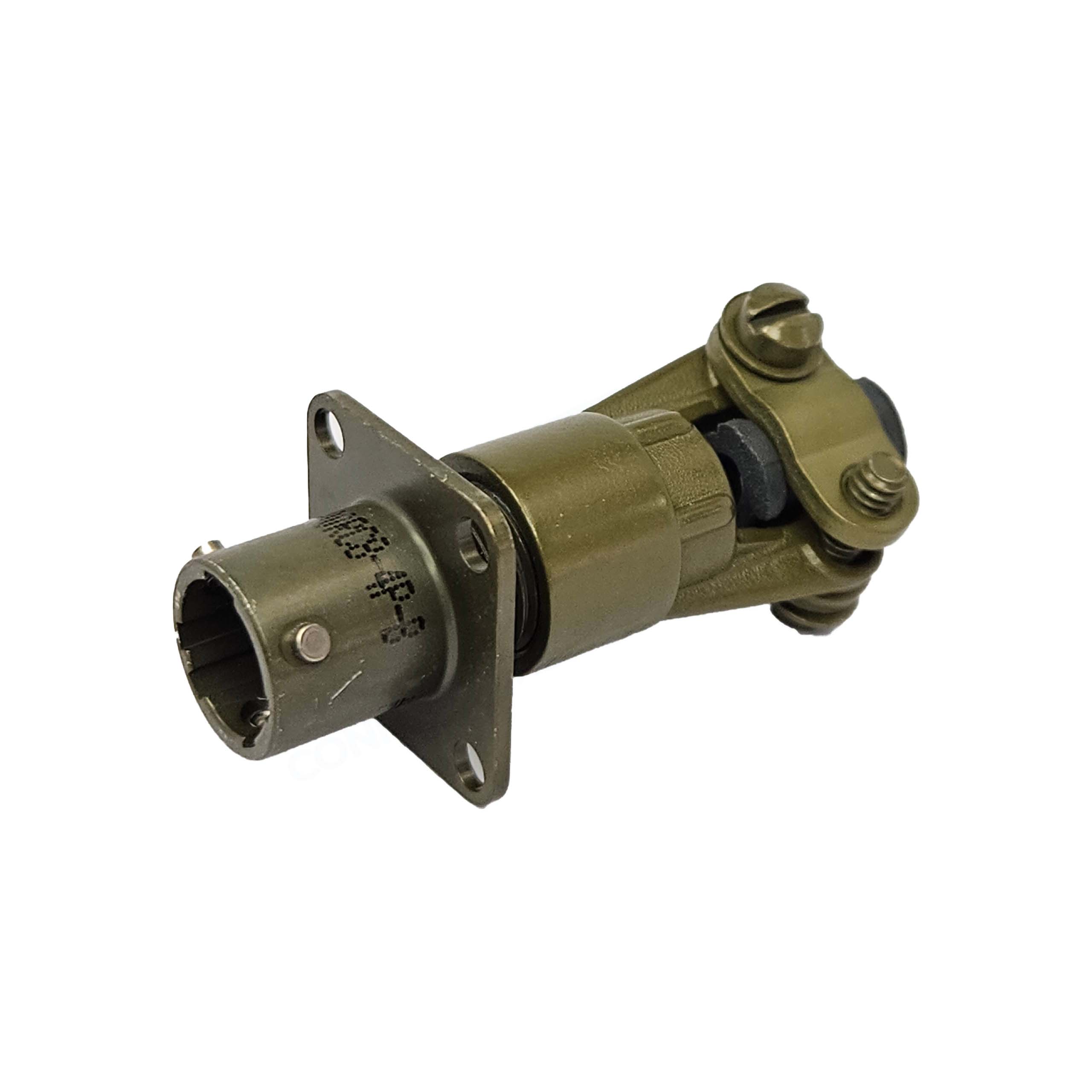 85100RC84PB, Square Flange Receptacle Accepting Backshells with 90° Cable Clamp, Shell Size 8 with 4#20 Pin Contacts, Aluminium with Olive Green Cadmium Plating.