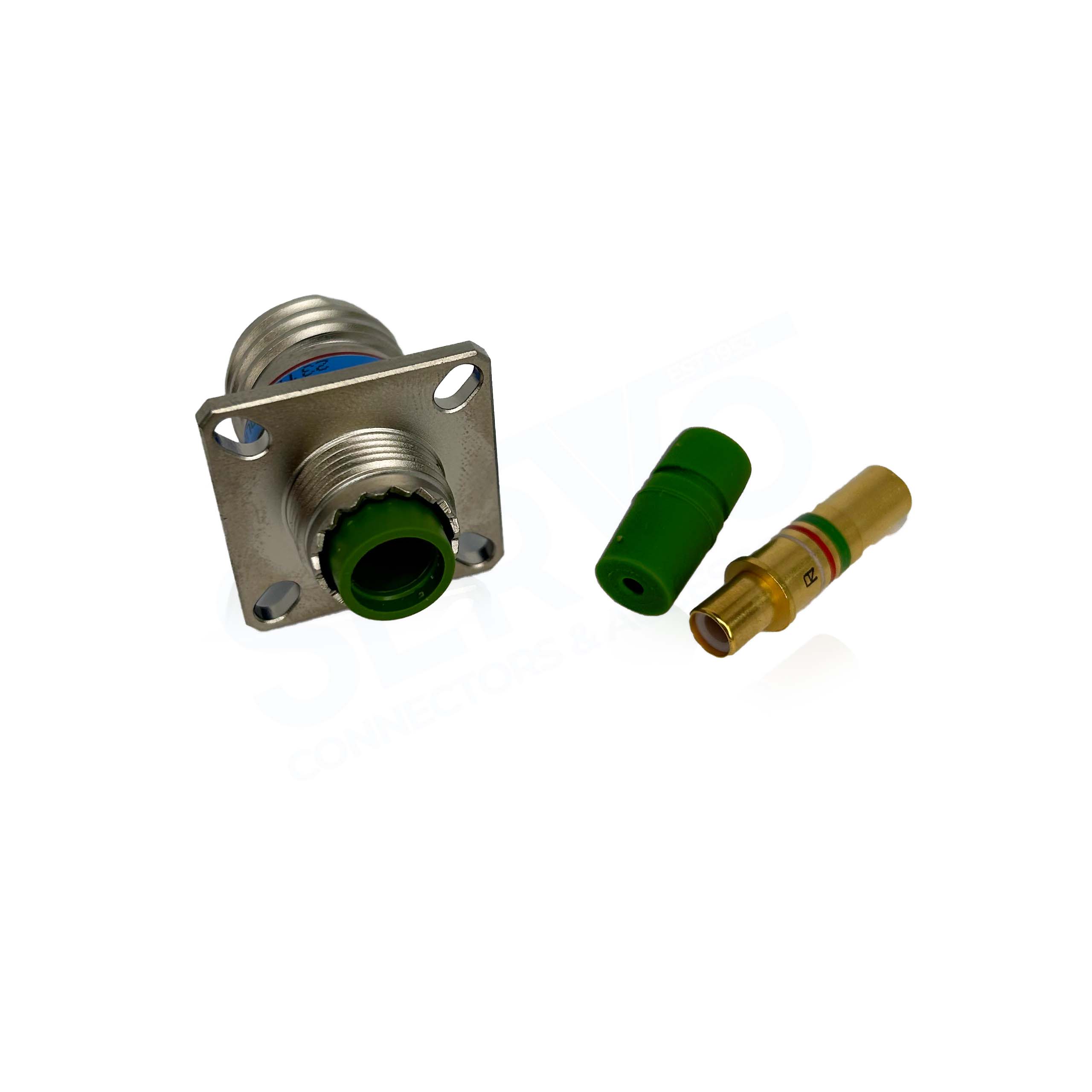 8D011F80PN, Square Flange Receptacle, Shell Size 11 with Aluminium Alloy Nickel (F) Plating, 1#8 Triax Pin Contacts, N Orientation.
