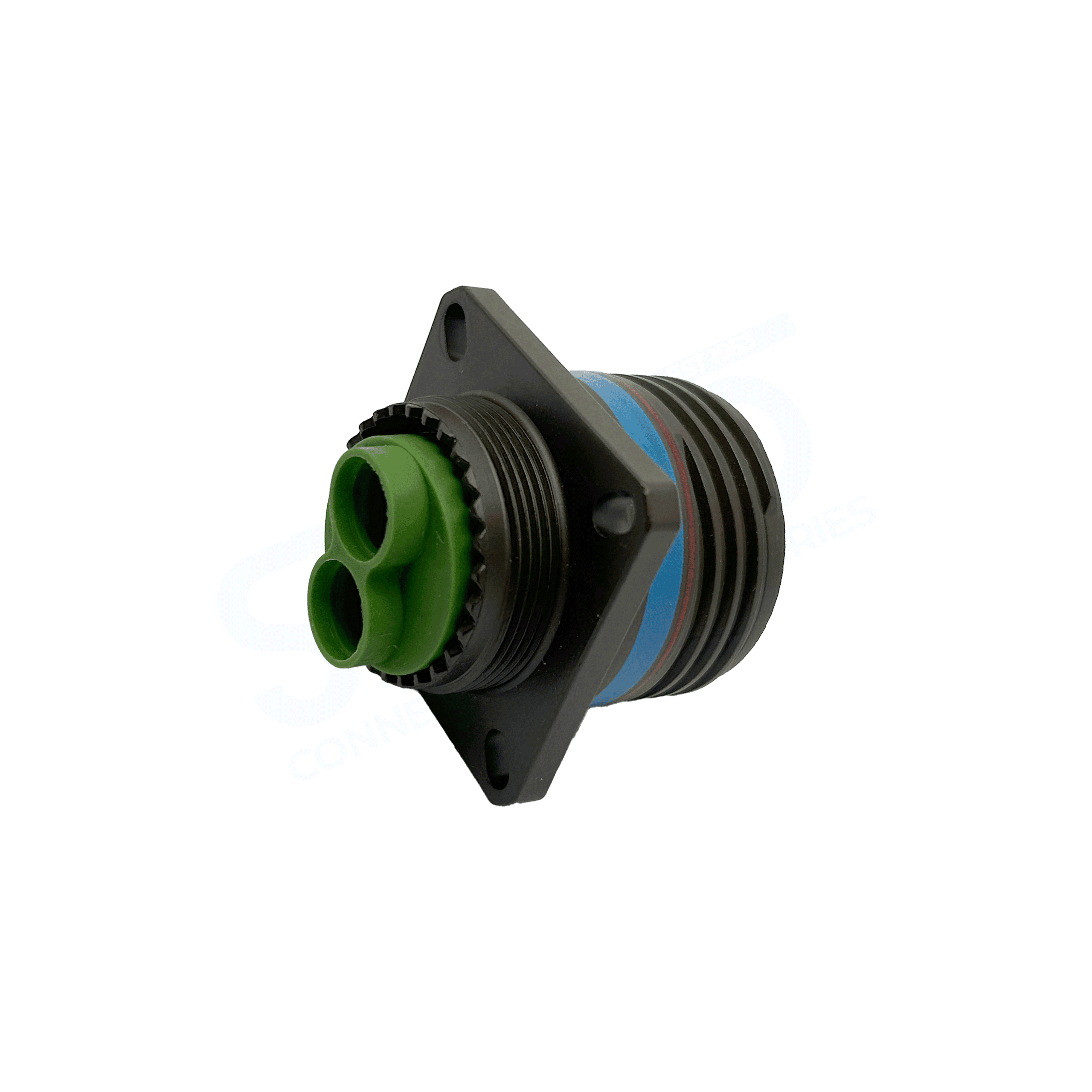 8D017J75SN, Square Flange Receptacle, Shell Size 17 with Cadmium Olive Drab (J) Plating, 4#8 Triax Socket Contacts.
