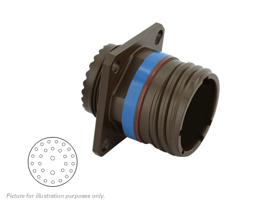 8D019W28PN, Square Flange Receptacle, Shell Size 19 with Cadmium Olive Drab (W) Plating, 26#20, 2#16 Pin Contacts.