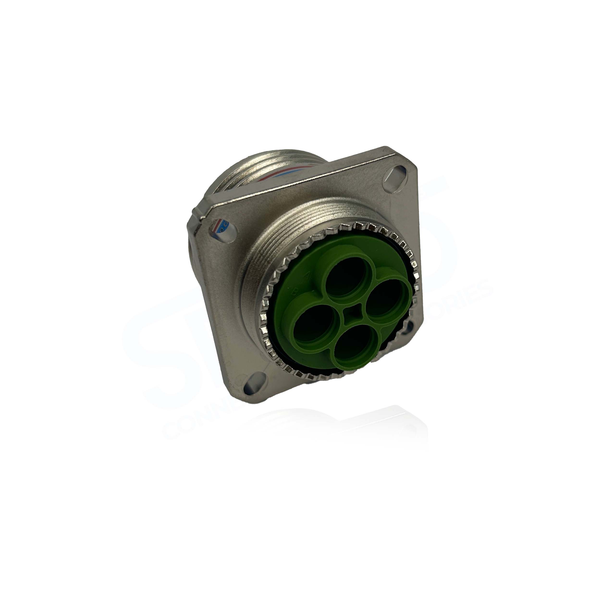8D021M48SC, Square Flange Receptacle, Shell Size 21 with Composite Nickel (M) Nickel Plating, 4#8 Power Socket Contacts, C Orientation.