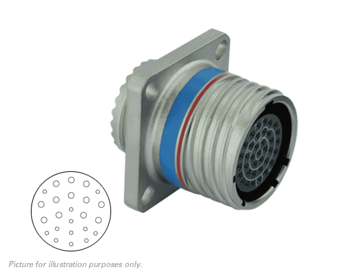 8D025M24SD, Square Flange Receptacle, Shell Size 25 with Composite Nickel (M) Plating, 12#16,12#12 Socket Contacts, D Orientation.