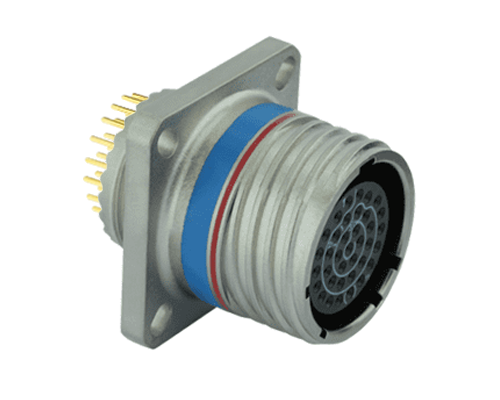 8D0C17M35SN Square Flange Receptacle, Shell Size 17 with Composite Nickel Plating, 55#22D Short PCB Tail Socket Contacts.