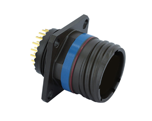 8D0L15M35PN900 Square Flange Receptacle, Shell Size 15 with Composite Nickel Plating, 19#20 Long PCB Tail Pin Contacts.