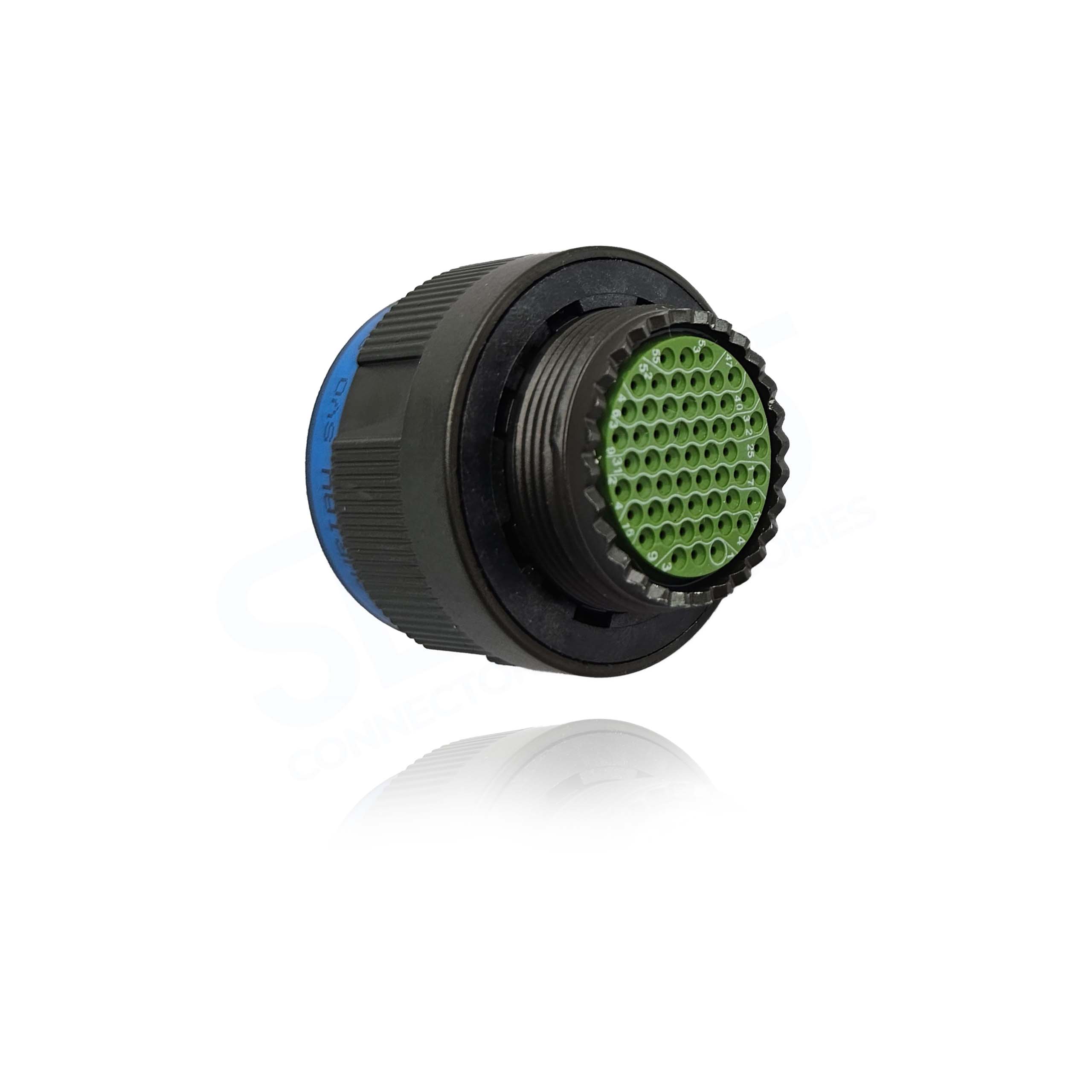 8D517ZC35PB, Plug with RFI Shielding, Shell Size 17 with Green Zinc Cobalt Plating, 55#22D Pin Contacts, B Orientation.