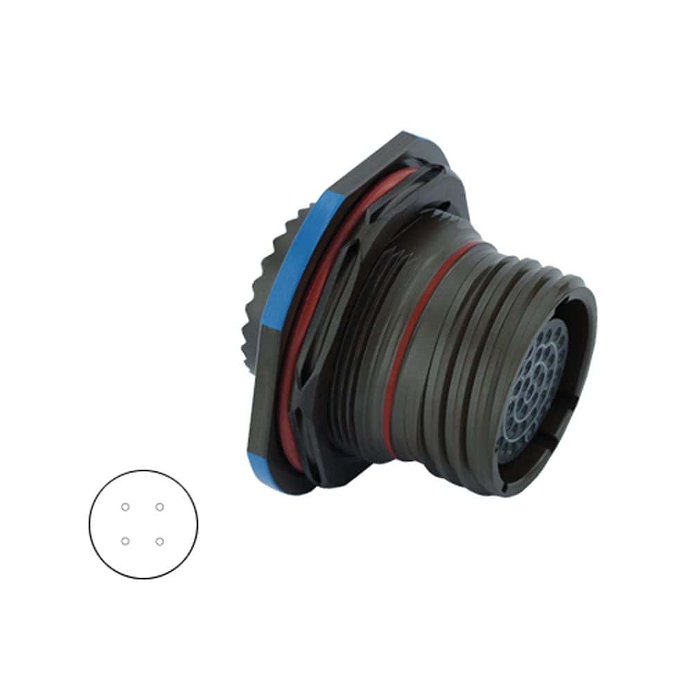 Eaton Souriau 8D711ZC22SA 8D Series III Jam Nut Receptacle, Shell Size 11 with Aluminium Alloy Green Zinc Cobalt Plating, 4#22D Female Sockets Contacts, A Orientation. Ideal for Aerospace, Industrial, Military.