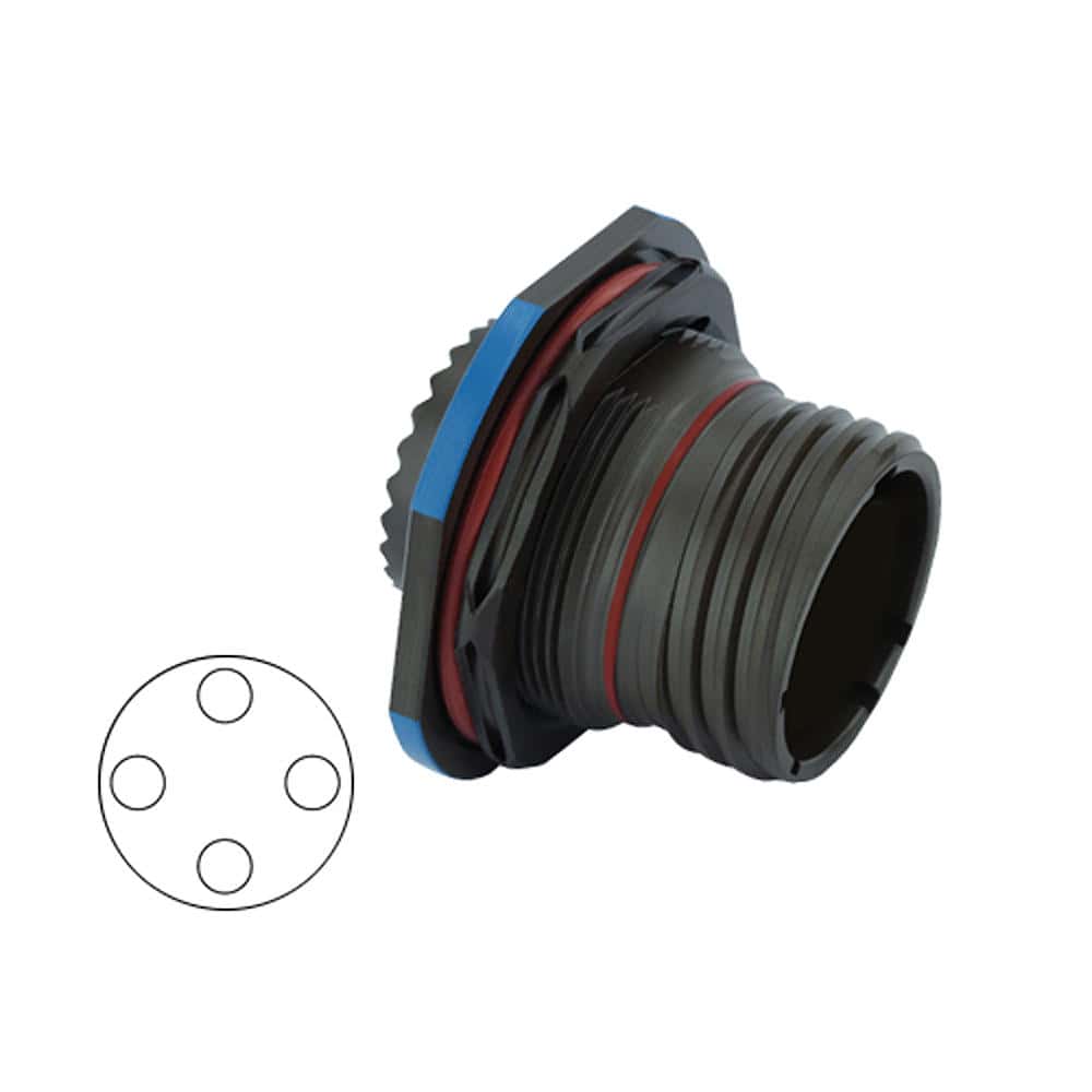 8D721Z48PN, Jam Nut Receptacle. Shell Size 21 with Black Zinc Nickel Plating (Z), 4#8 Power Pin Contacts.