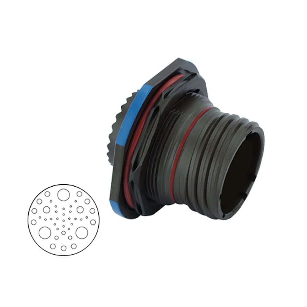Eaton Souriau 8D725ZC41AN 8D Series III Jam Nut Receptacle, Shell Size 25 with Aluminium Alloy Green Zinc Cobalt Plating, 22#22D,3#20,11#16,2#12,3#8 TRIAX Less Pins Contacts, N Orientation. Ideal for Aerospace, Industrial, Military.