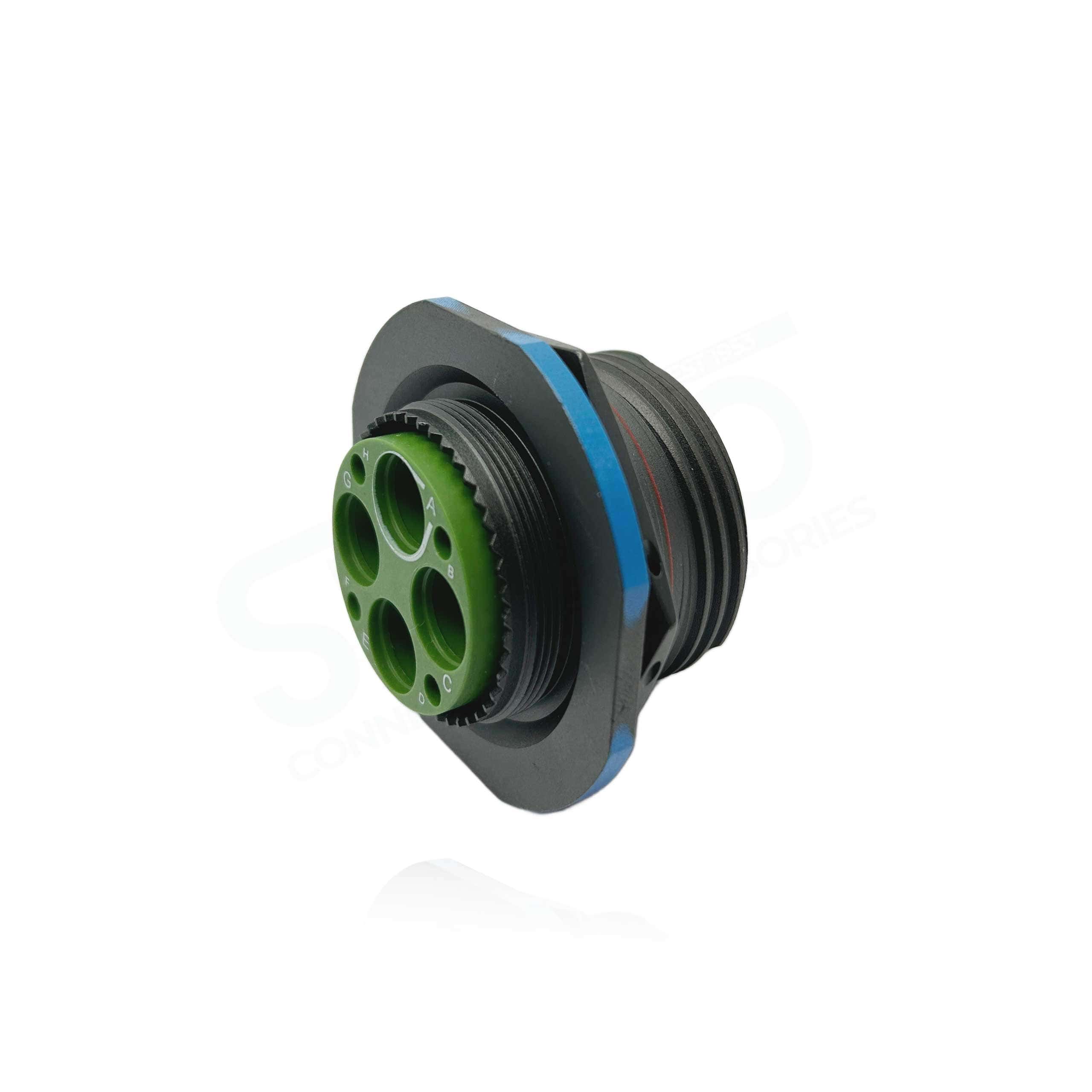 Eaton Souriau 8D725ZC44PN 8D Series III Jam Nut Receptacle, Shell Size 25 with Aluminium Alloy Green Zinc Cobalt Plating, 4#16,4#4 POWER Male Pins Contacts, N Orientation. Ideal for Aerospace, Industrial, Military.