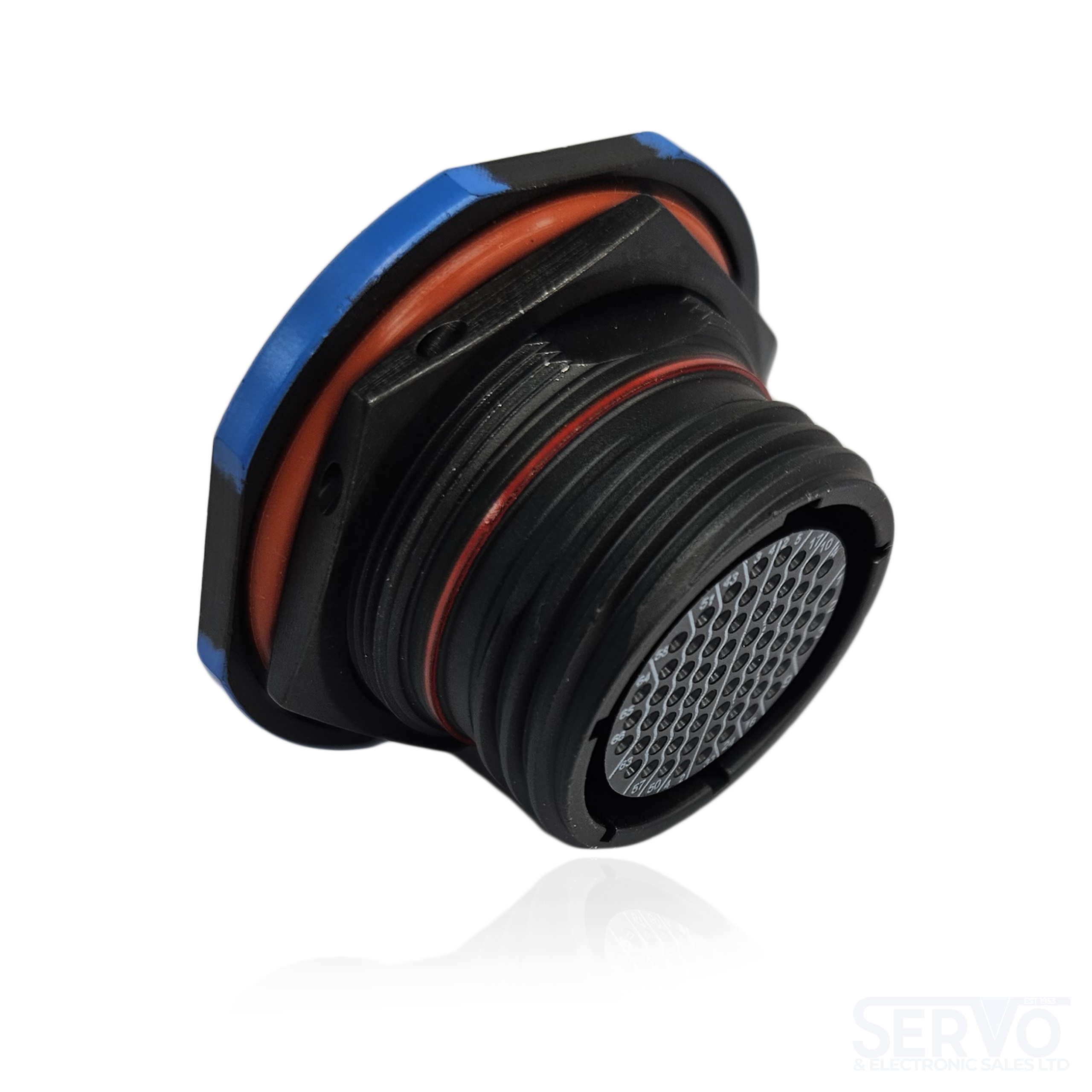 8D7C19Z35SN Jam Nut Receptacle, Shell Size 19 with Black Zinc Nickel Plating, 66#22D Short PCB Tail Socket Contacts.