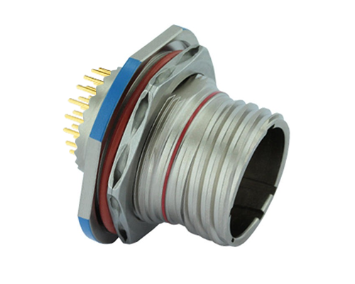 8D7C23F35SA, Jam Nut Receptacle, Shell Size 23 with Nickel Plating, 100#22D Short PC Tail Socket Contacts, A Orientation.