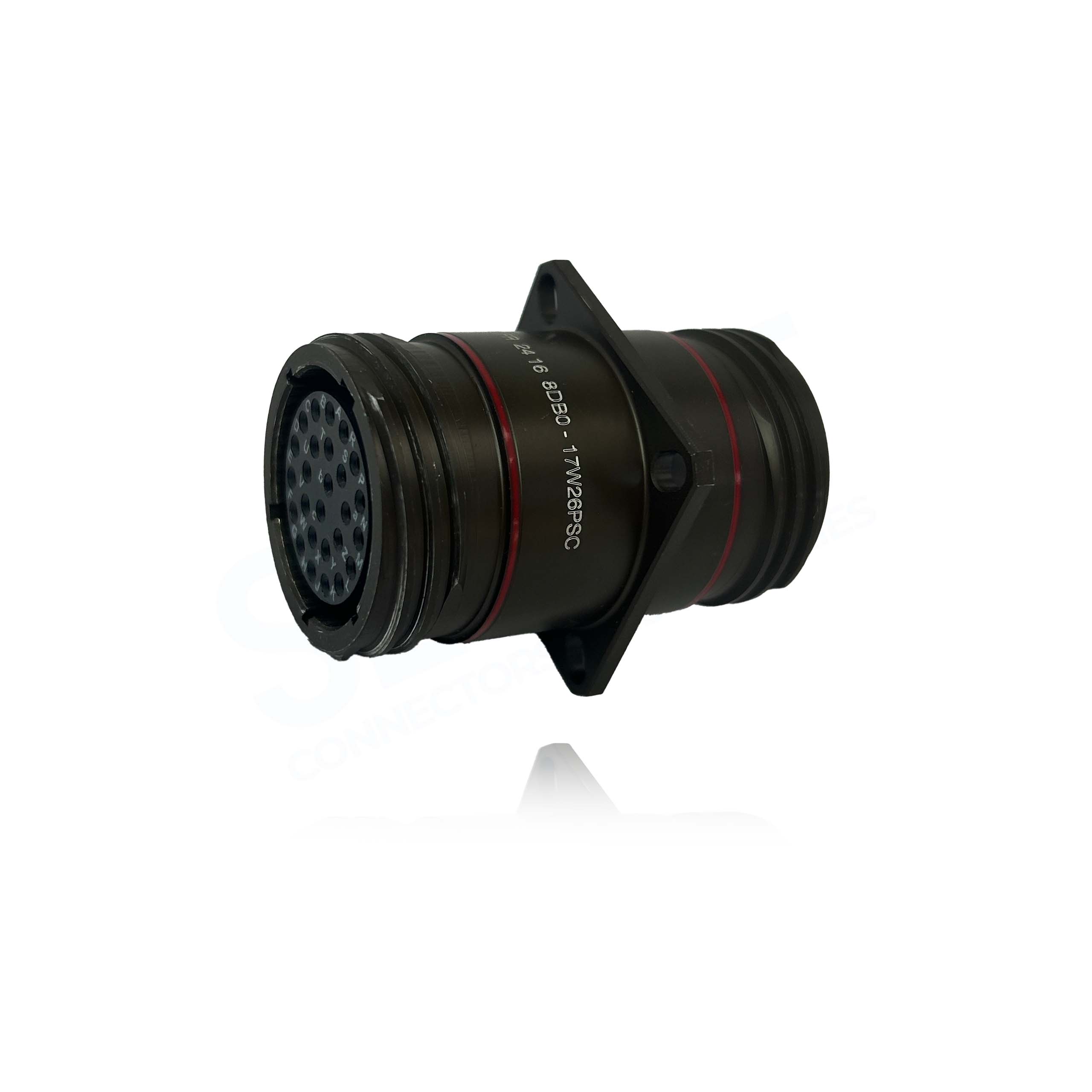 8DB017W26PSC, Bulkhead Feed Thru, Square Flange Receptacle, Shell Size 17 with Olive Drab Cadmium Plating, 26#20 Pin – Socket Contacts, C Orientation.
