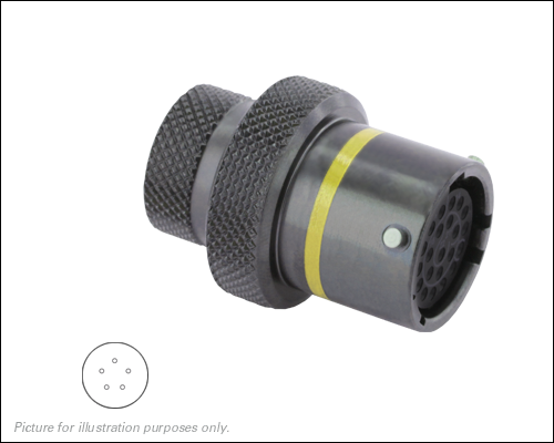 8STA10205SA, In-Line Receptacle, Composite without Nickel Shell Size 02 with 5#26 Socket Contacts, Yellow Orientation.