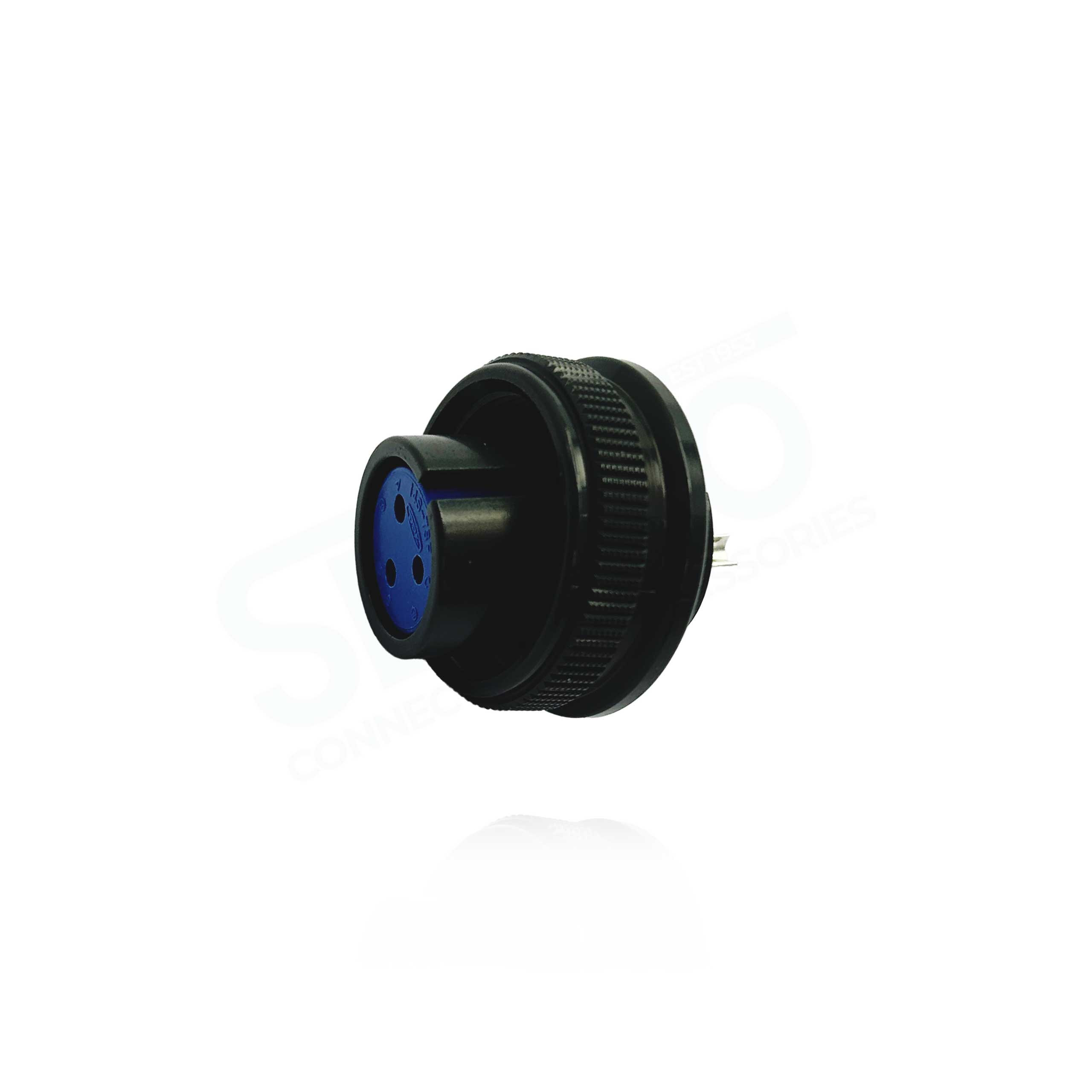 D/MS3106A14S-7SX(D190) / D/MS3106A14S-7SX(D190)(R1), Moistureproof Straight Plug, Black Trivalent Chromate, Shell Size 14S with 3#16 Socket Contacts, X Orientation.