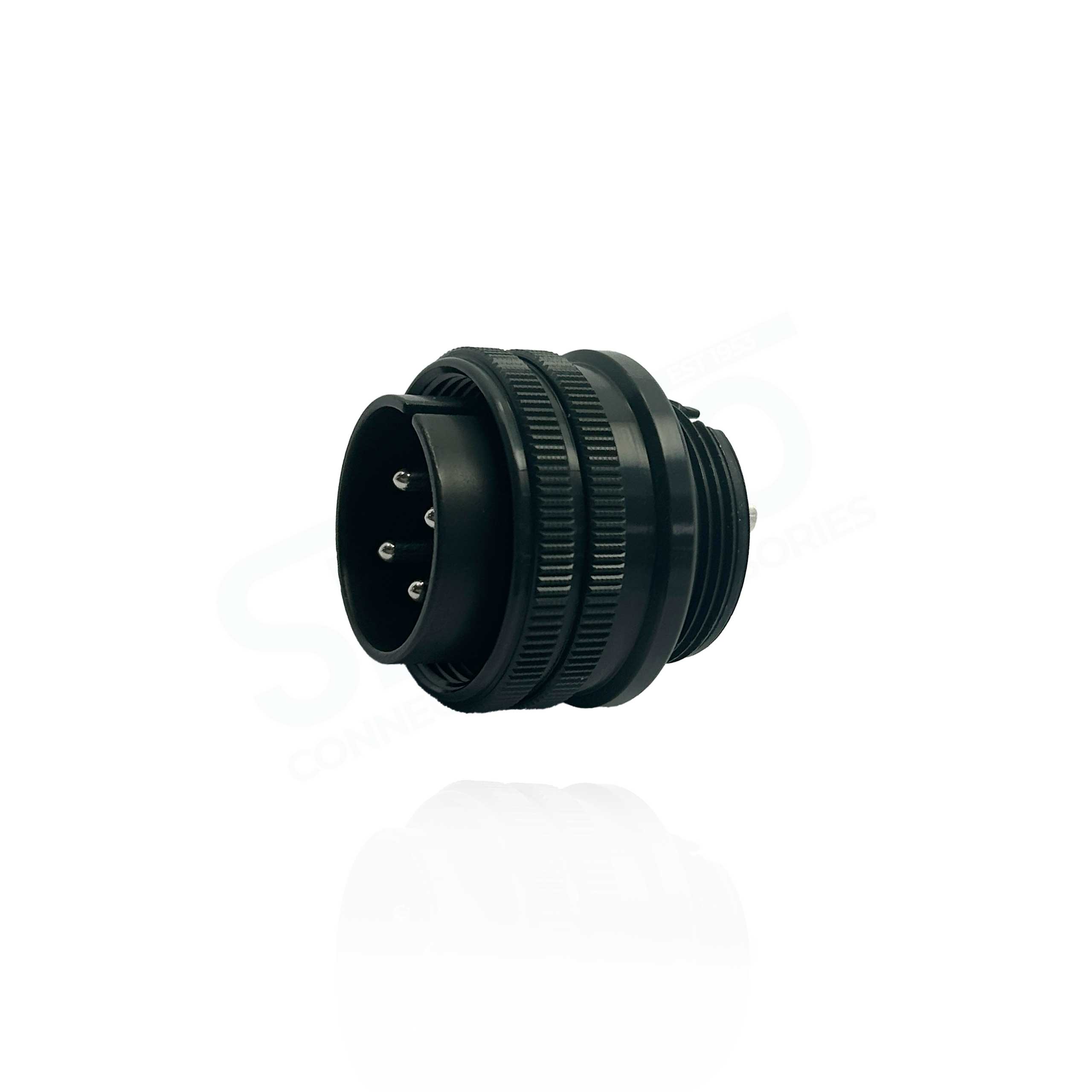 D/MS3106A20-4PW(D190) / D/MS3106A20-4PW(D190)(R1), Moistureproof Straight Plug, Black Trivalent Chromate, Shell Size 20 with 4#12 Pin Contacts, W Orientation.