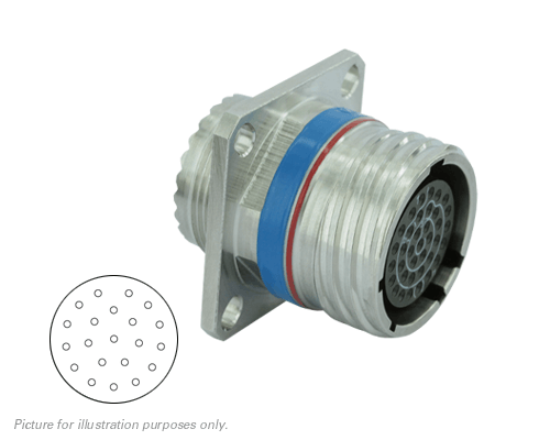 D38999/20KH21SC / 8D023K21SC, Square Flange Receptacle, Shell Size 23 with Passivated Stainless Steel, 21#16 Socket Contacts, C Orientation.
