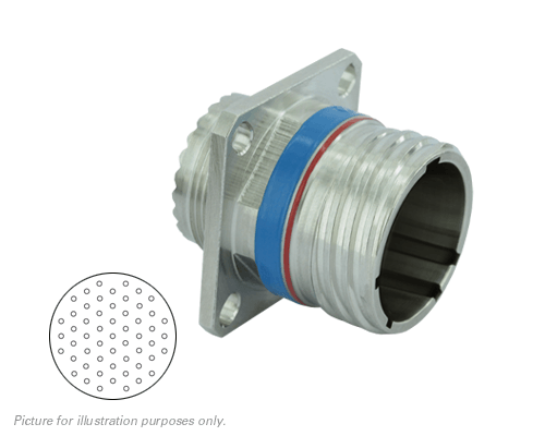 D38999/20KH55PB / 8D023K55PB, Square Flange Receptacle, Shell Size 23 with Passivated Stainless Steel, 55#20 Pin Contacts, B Orientation.