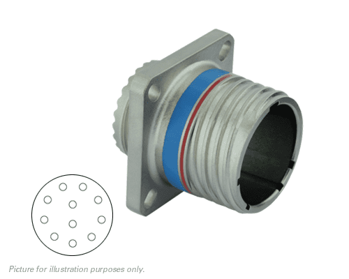 D38999/20MG11AD / 8D021M11AD, Square Flange Receptacle, Shell Size 21, Composite Nickel, 11#12 Less Pin Contacts, D Orientation.