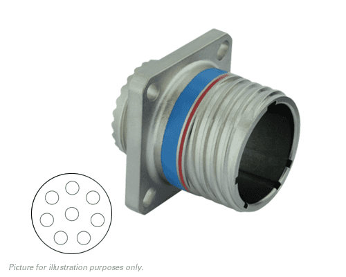 D38999/20MJ8AB, Square Flange Receptacle, Shell Size 25, Composite Nickel, 8#8 Triax Less Pin Contacts, B Orientation.