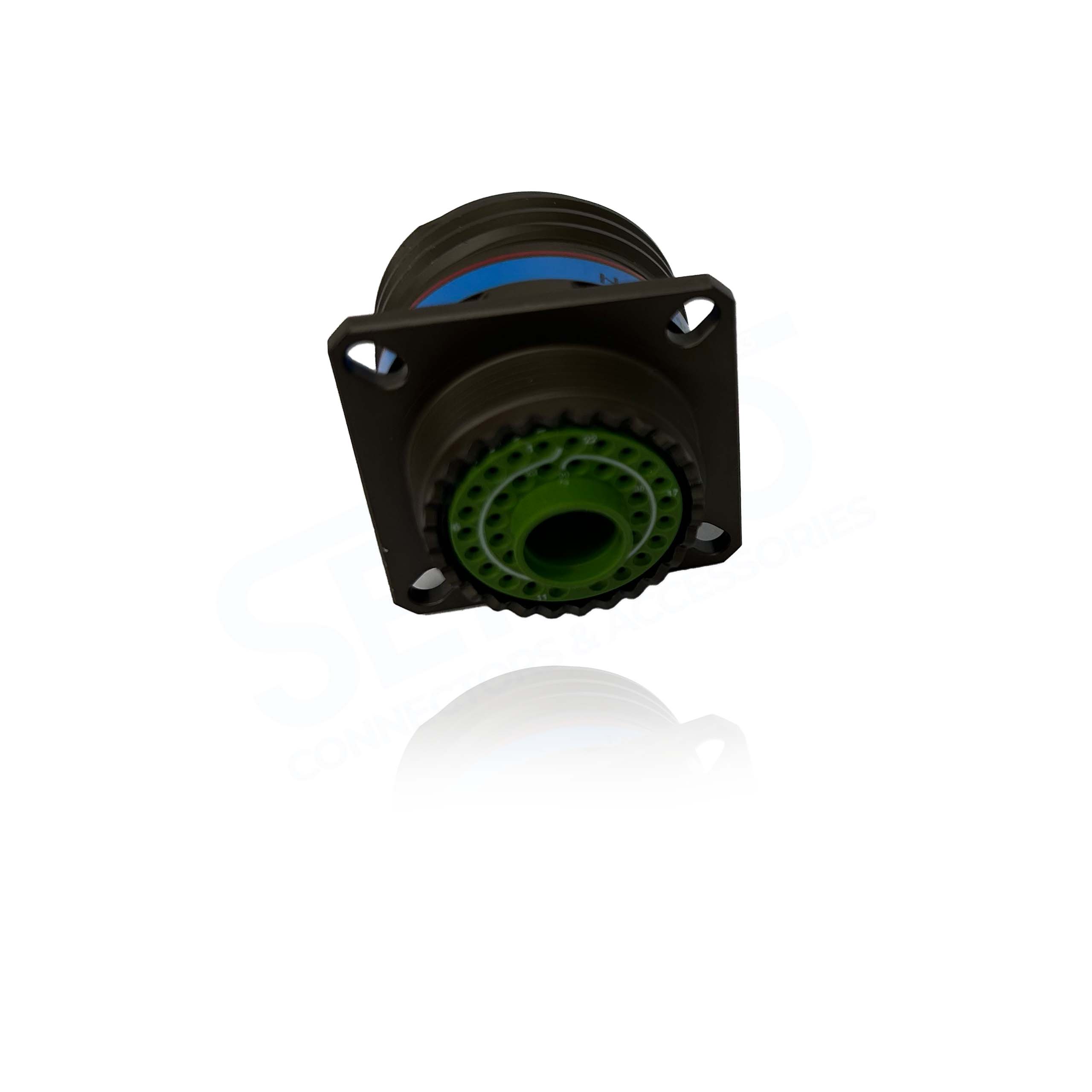 D38999/20WE2BA / 8D017W02BA, Square Flange Receptacle, Shell Size 17 with Aluminium Olive Drab Cadmium Plating, 38#22D, 1#8 Triax Less Socket Contacts, A Orientation.