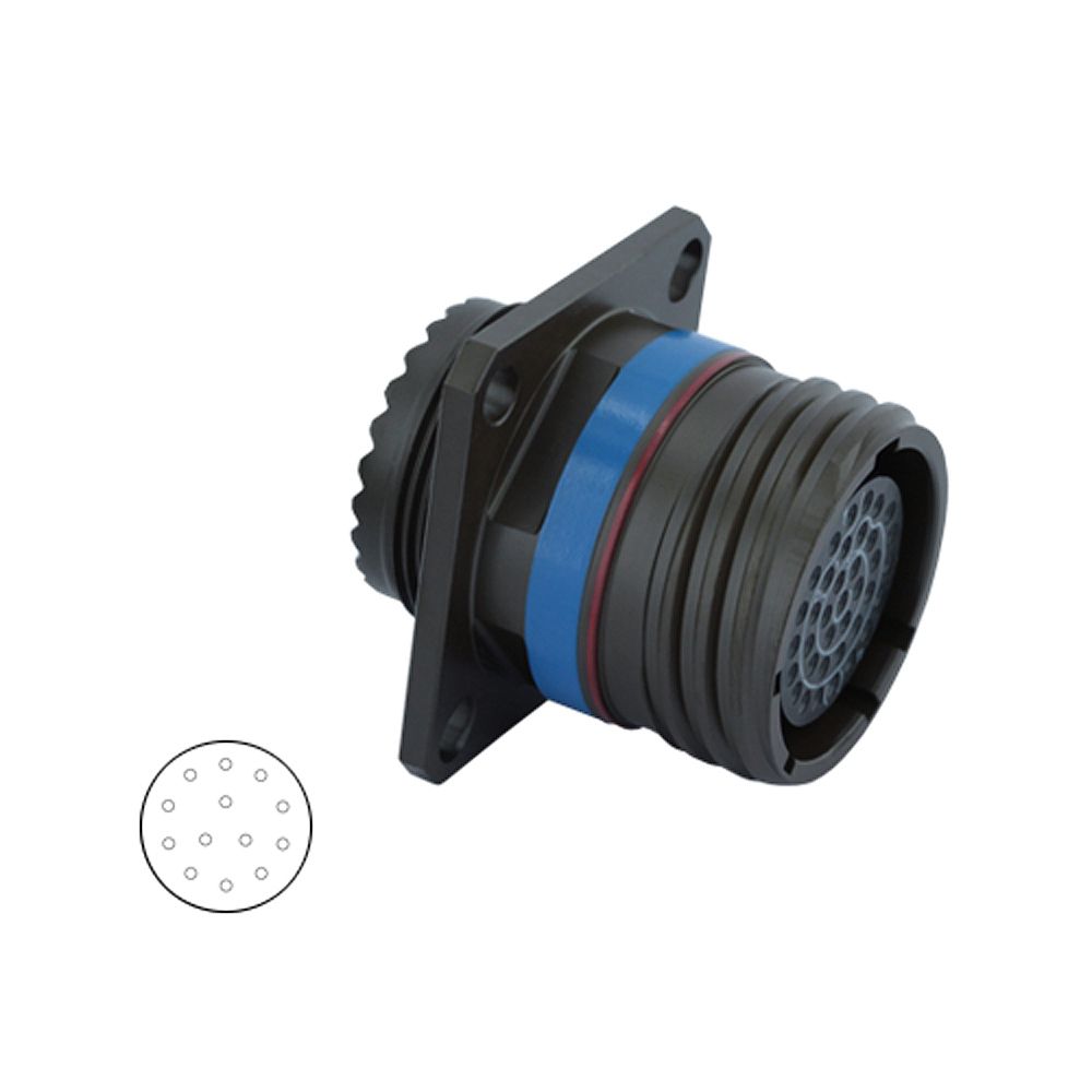 D38999/20ZB35SA / 8D011Z35SA, Square Flange Receptacle, Shell Size 11 with Black Zinc Nickel Plating, 13#22D Socket Contacts, A Orientation.