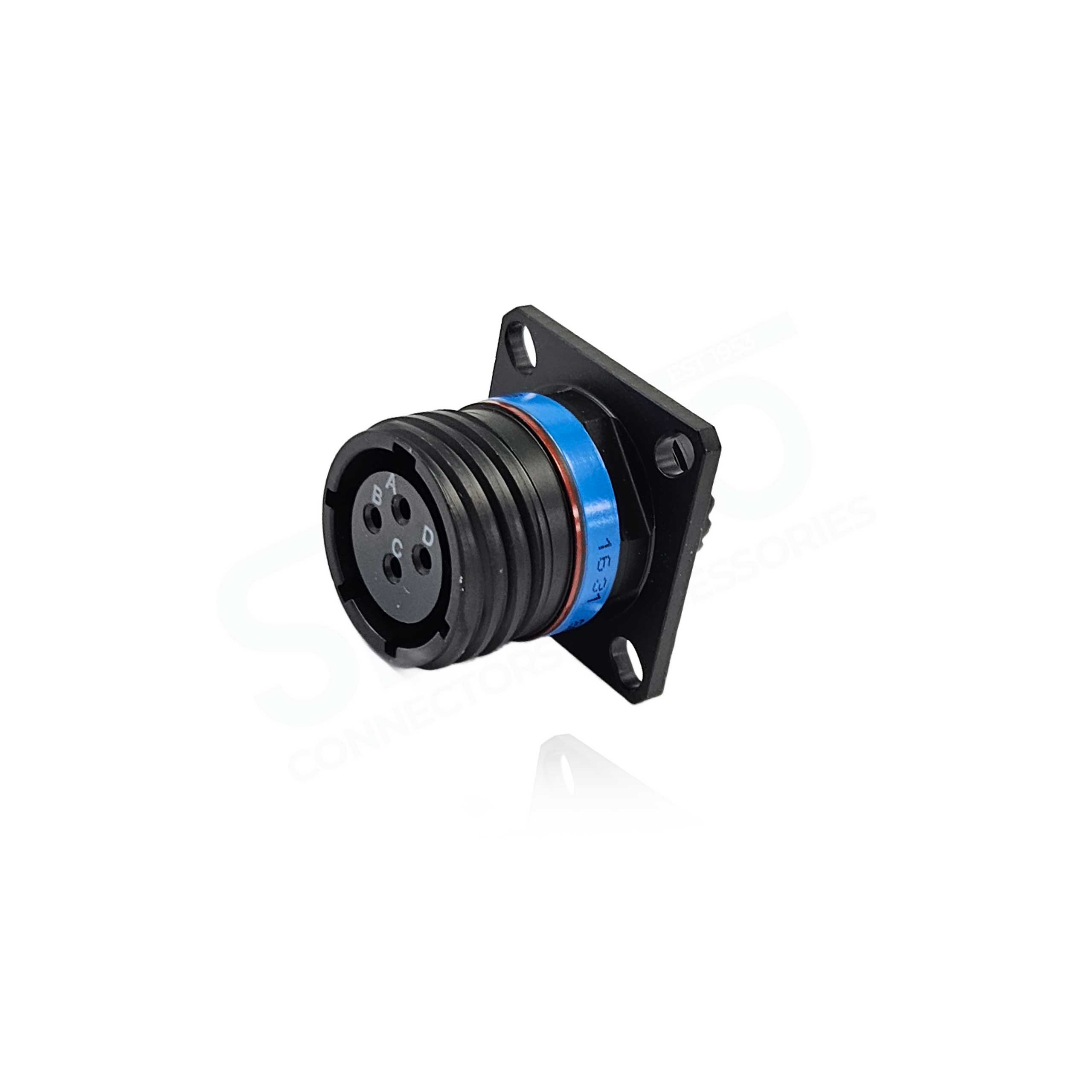 D38999/20ZC4BN / 8D013Z04BN, Square Flange Receptacle, Shell Size 13 with Aluminium Black Zinc Nickel Plating, 4#16 Less Socket Contacts.