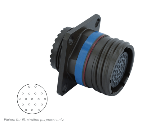 D38999/20ZD18SN / 8D015Z18SN, Square Flange Receptacle, Shell Size 15 with Black Zinc Nickel Plating, 18#20 Socket Contacts.