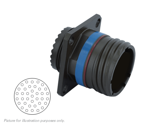 D38999/20ZJ37PB / 8D025Z37PB, Square Flange Receptacle, Shell Size 25 with Black Zinc Nickel Plating, 37#16 Pin Contacts, B Orientation.