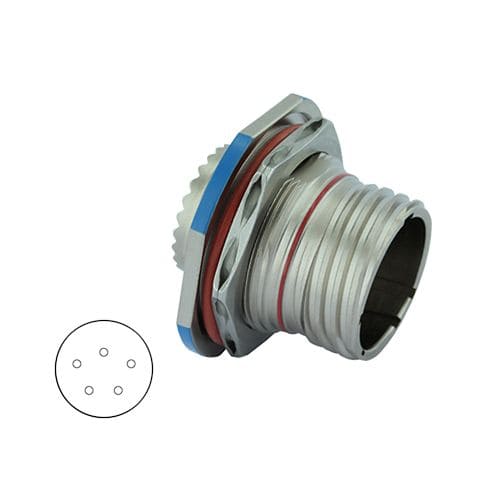 D38999/24FD5PA, Jam Nut Receptacle, Shell Size 15 with Aluminium Alloy Nickel (F) Plating, 5#16 Pin Contacts, A Orientation.