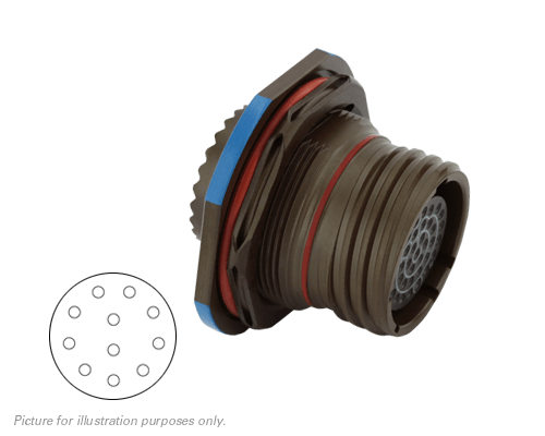 D38999/24WG11BD / 8D721W11BD, Jam Nut Receptacle, Shell Size 21 with Olive Drab Cadmium Plating, 11#12 Less Socket Contacts, D Orientation.