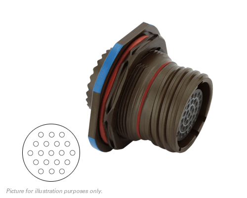 D38999/24WJ19SD, Jam Nut Receptacle, Shell Size 25 with Aluminium Olive Drab Cadmium Plating, 19#12 Socket Contacts, D Orientation.