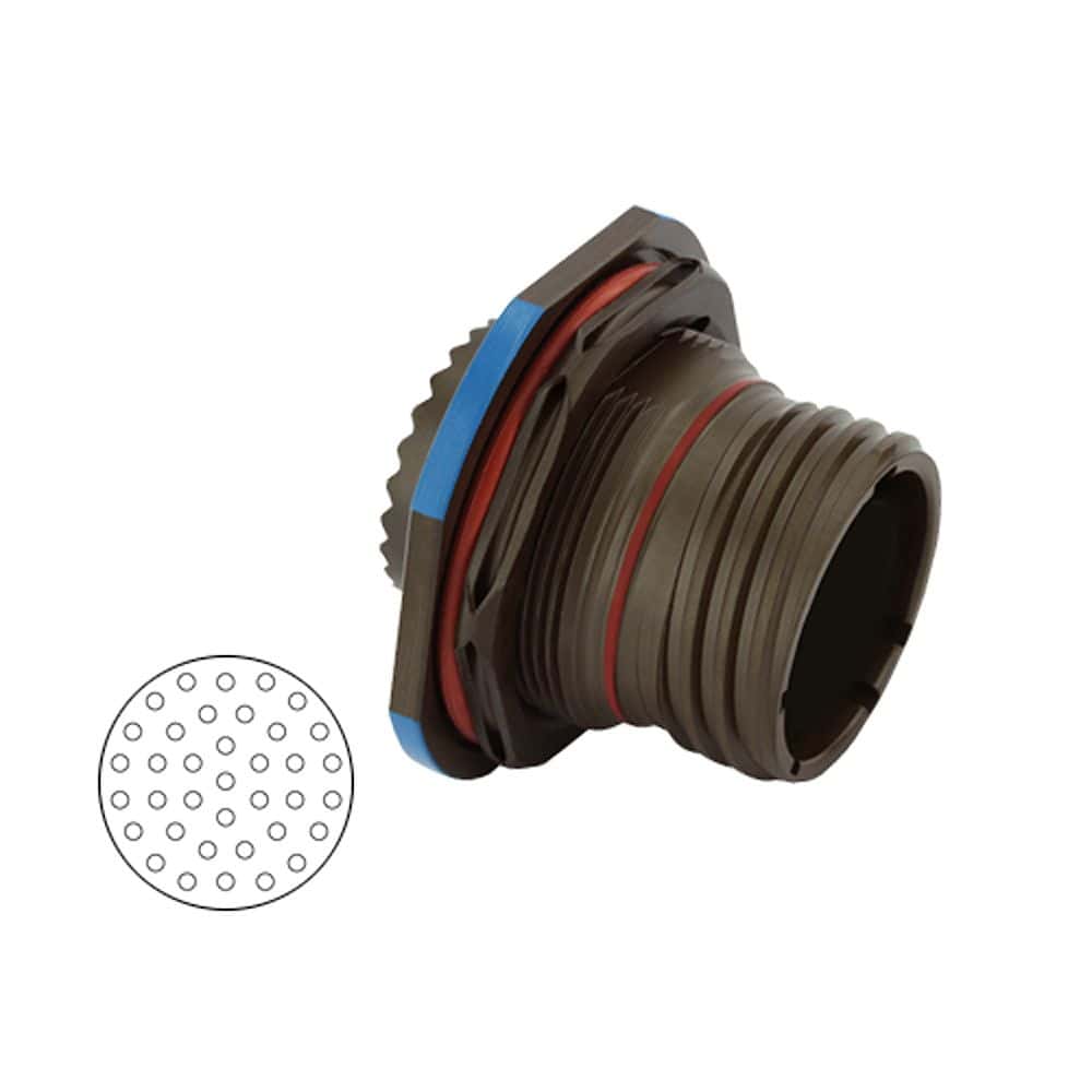 D38999/24WJ37PN, Jam Nut Receptacle, Shell Size 25 with Aluminium Olive Drab Cadmium Plating, 37#16 Pin Contacts, N Orientation.