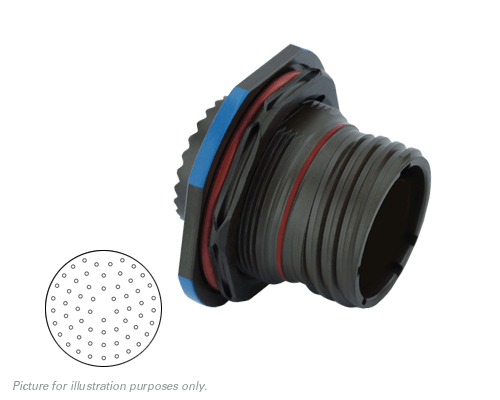 D38999/24ZJ61AE, Jam Nut Receptacle, Shell Size 25 with Aluminium with Black Zinc Nickel Plating, 61#20 Less Pin Contacts, E Orientation.