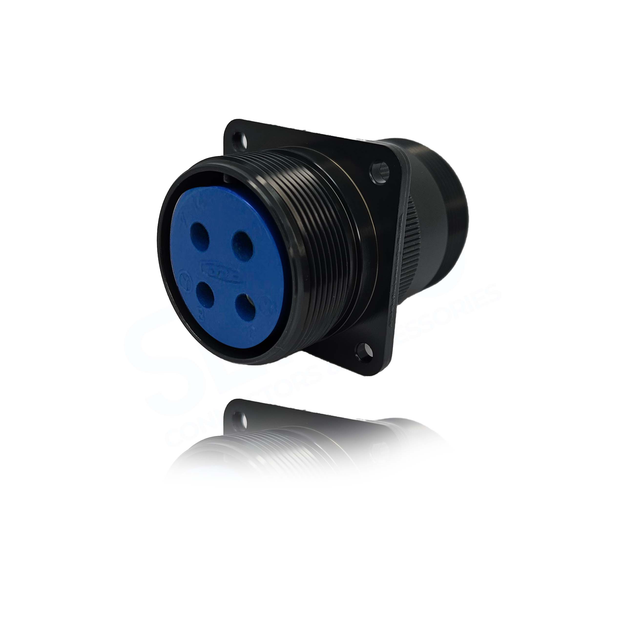 D/MS3100A14S-2PX, Wall Mount Receptacle, Black Trivalent Chromate, Shell Size 14S with 4#16 Socket Contacts, X Orientation.