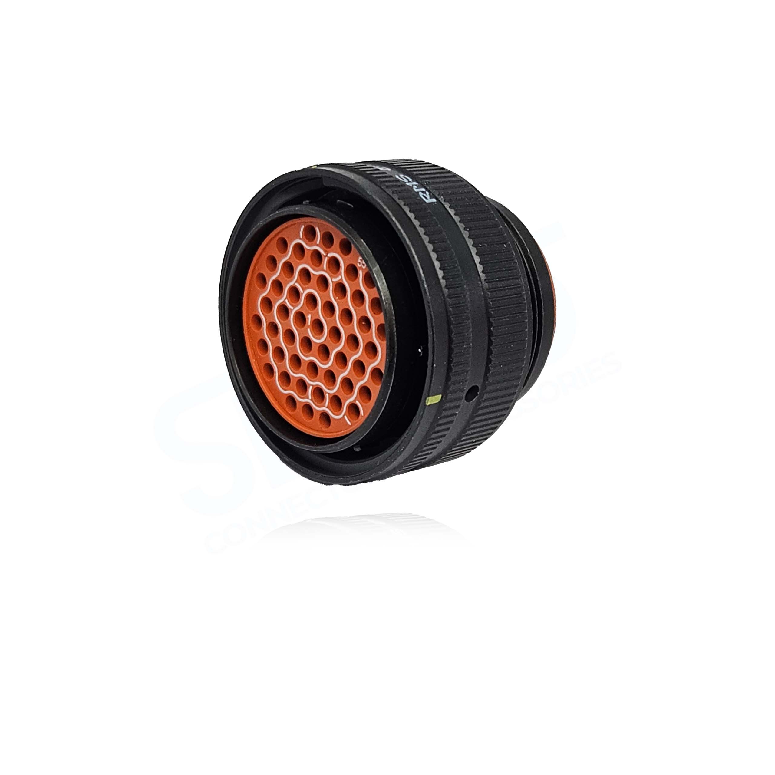 MS24266R22B55S8, Straight Plug, Bayonet Coupling, MILC26500, Shell Size 22, Aluminium Black Anodised, With 55#20 Socket Contacts, Alternate Position 8.