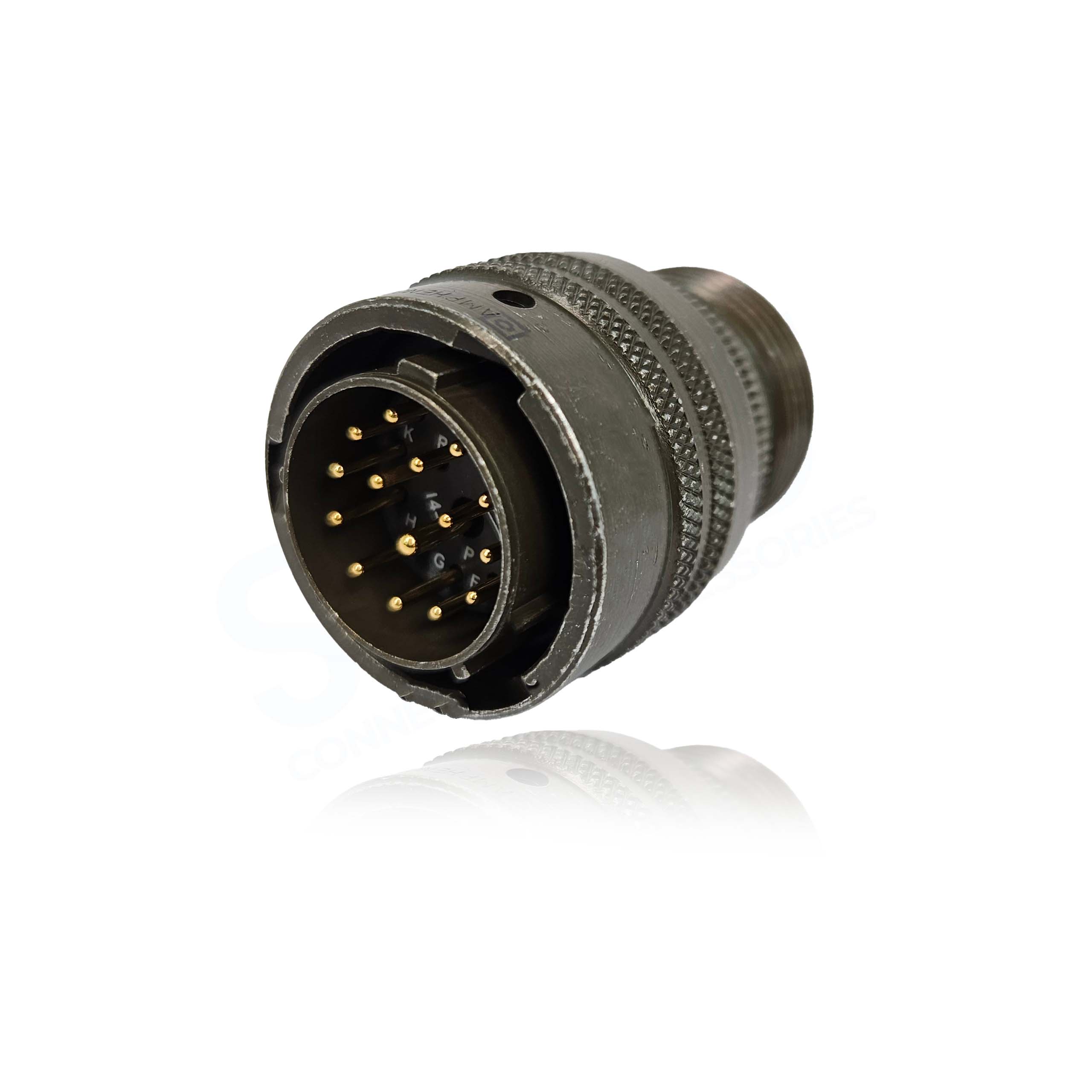 PT06A14-15P, Free Hanging Plug., Shell Size 14, Olive Drab Chromate over Cadmium Aluminium Alloy Plating, Bayonet Lock, Pin Contacts