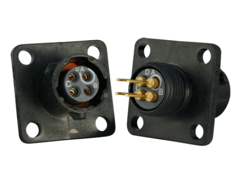 UTS08D33S, Square Flange Receptacle, 8 with PCB Socket Contacts, N Orientation.