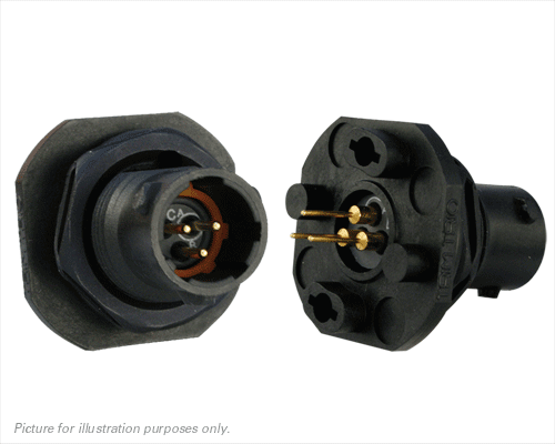 UTS78D33P, Jam Nut Receptacle – 2 x #20 Loaded Male PCB contacts, Shell Size 8