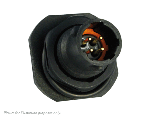 UTS78E4P, Jam Nut Receptacle – 3 x #20 Handsolder Loaded Female Contacts, Shell Size 8