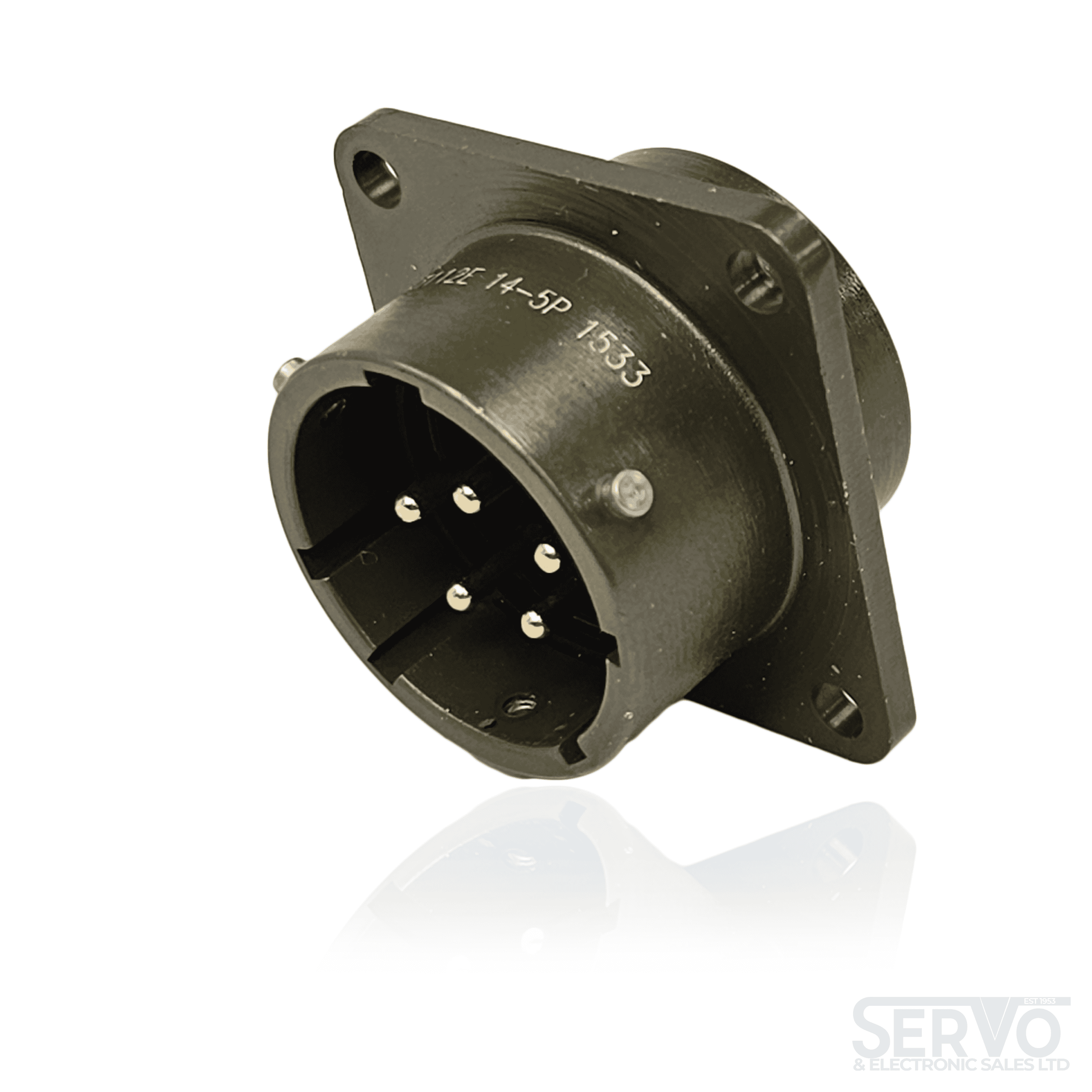 YH3112E14-5P MIL-DTL-26482 I Style Box Mounting Receptacle, Green Zinc, Shell Size 14 with 5#16 Pin Contacts.