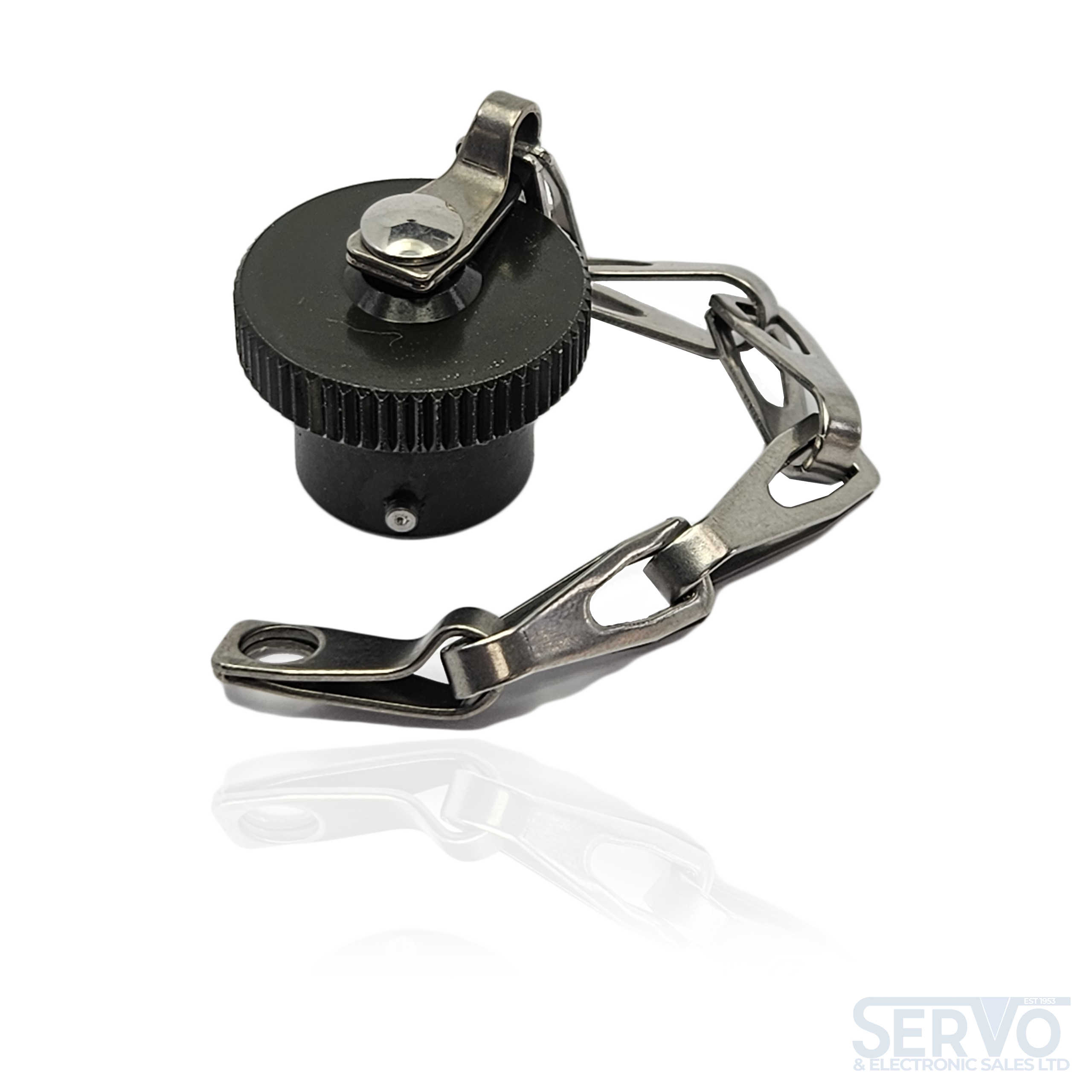 YH3180-10C* MILC26482 Series I Plug Cap Green Zinc Cobalt with Chain & Eyelet.